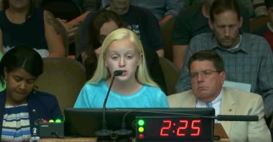 Karkeaa suomennosta, Addison Woosley, 13, puheesta: ”Ei ole mitään muuta selitystä olemassa. Abortti on murha. Joten miksi se, jos lapsi … Lisää